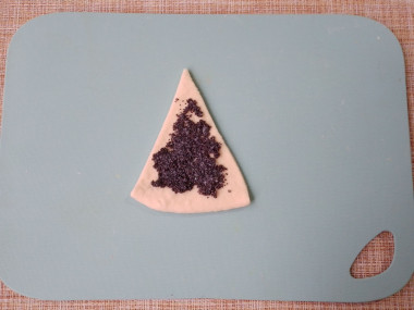 Выкладывайте поочередно на каждую часть лепешки равномерным слоем необходимое количество приготовленной маковой начинки.