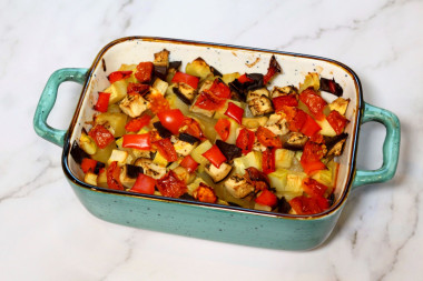 Как сделать овощное рагу в духовке с мясом и картошкой? Подготовьте необходимые ингредиенты по списку. Овощи вымойте и обсушить. В зависимости от размера вашей формы для запекания, вы можете увеличить количество любимых овощей.