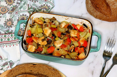 Как и обещал автор рецепта, все очень вкусно, очень просто и красиво! Все овощи тают во рту, филе куры делает вкус блюда еще более насыщенным, ярким и разнообразным. Я брала данный рецепт за основу. Морковь, зелень и паприку добавлять не стала, а вот кабачок добавила дополнительно, поскольку обожаю этот овощ. Думаю, что и зимой буду готовить подобные блюда, поскольку у меня есть заготовки замороженных овощей, это будет очень удобно. Еще раз соглашусь с высказыванием автора «Рецепт прост как дважды два!», так что всем любителям овощей советую взять на заметку.