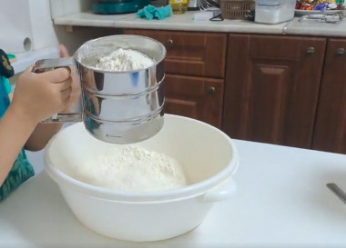 При добавлении какао или разрыхлителя – через сито их легче равномерно перемешать с мукой.