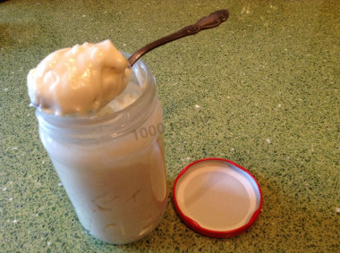 Вот такой вкуснейший домашний майонез получился. Хранить в стеклянной баночке в холодильнике. Неделю может храниться. Выходит почти 0,5 литра майонеза. Приятного аппетита!