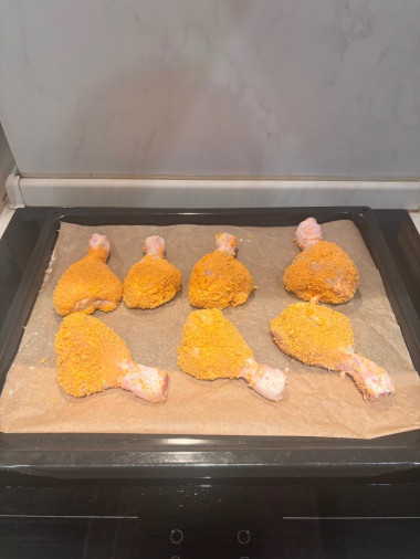 Когда все ножки в панировке, можно приступать к следующему этапу - жаренью или к запеканию в духовке (если вы, конечно, выбрали этот вариант приготовления).