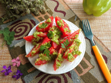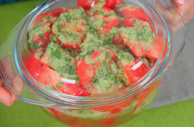 Помидоры с чесноком и перцем это ароматной закуски на основе свежих томатов с острой заправкой из болгарского перца с чесноком, которая приятно удивила вкусом! спасибо за рецепт.