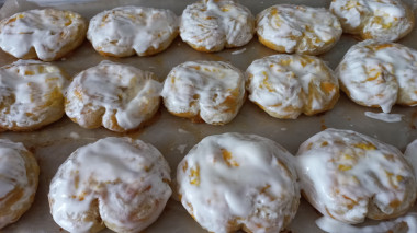 Сразу ставьте выпекать в заранее разогретую духовку при t 200°С. Через 5 минут убавьте до t 180° и готовьте до появления румянца, это около 20-30 минут. Время может незначительно отличаться. Смешайте сметану с сахаром. Готовые, горячие творожные завитушки смажьте сметанной заливкой, включая бока. Верните на 1-2 минуты в духовку, чтобы заливка схватилась.
