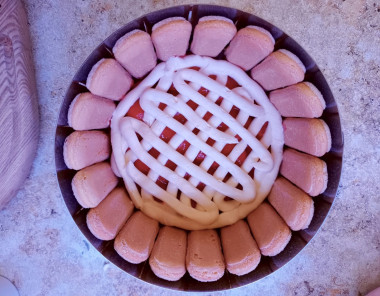 Торт собирается очень легко. Печенье Савоярди хорошо обмакиваем в клубничном сиропе с двух сторон.