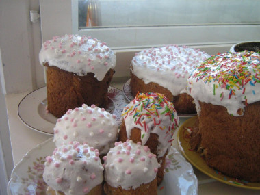 Готовые пасхальные куличи на сметане, сливочном масле, сухих дрожжах и молоке полностью остудите, украсьте глазурью и подавайте к столу. Доброй и светлой Пасхи!