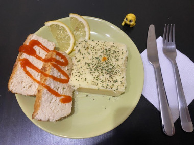 Рад, что вышло вкусно. Жена говорит, что похоже на омлет. Мне показалось, что немного "резиновый" вкус из-за куриной грудки, которая всегда "суховата" получается.