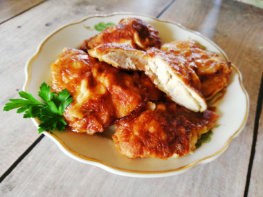 Приготовила сегодня на ужин вкусную отбивнуют куриную грудку в кляре.