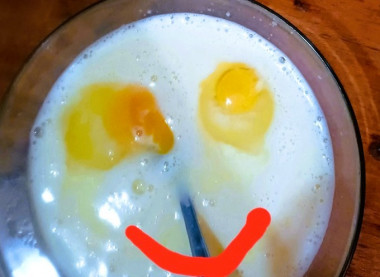 Влейте воду. Перемешайте вместе с яйцом и небольшим количеством муки.
