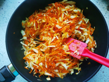 Затем добавьте квашеную капусту и варите все вместе еще примерно 15 минут, периодически помешивая. Квашеную капусту можете отжать перед добавлением или выложить вместе с рассолом - как больше нравится. По мне так с рассолом получается вкуснее.