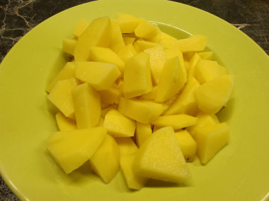 Картофель очистите от кожуры и нарежьте средними кубиками. Вкусно получится с молодой картошкой.