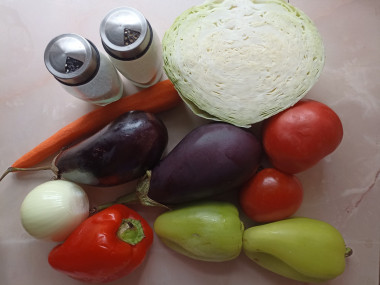 Как потушить баклажаны, капусту, болгарский перец? Подготовьте все необходимые продукты, которые заявлены в рецепте. Капусту лучше взять молодую, если вы используете более зрелый кочан, то время приготовления немного увеличится.