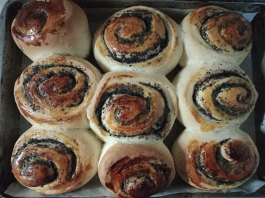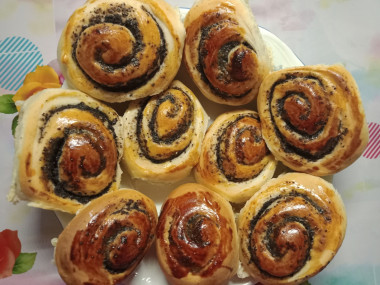 Спасибо за рецепт! Всей семье очень понравилась выпечка! Делала все по рецепту, ничего сложного нет. Только сделала в форме булочек (свернула рулет, а потом порезала его на кусочки).