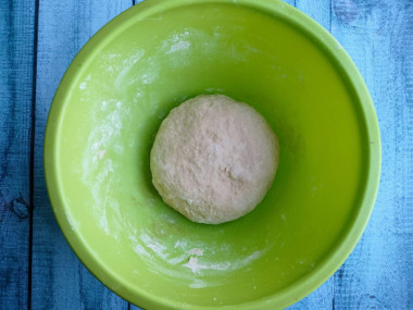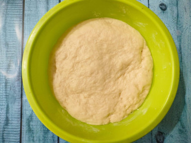 Тесто хорошо поднялось, увеличившись в объеме примерно в 2,5 раза. У меня это произошло за 1ч 15 минут. Время подъема теста будет зависеть от температуры воздуха и активности дрожжей.
