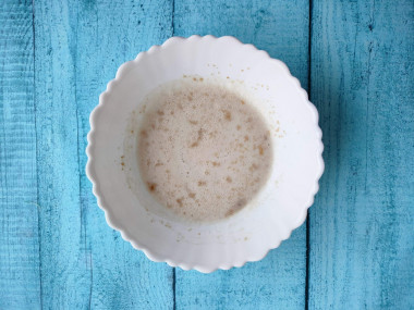 В маленькой мисочке соедините дрожжи, 1 ч.л. сахара (от общего количества) и примерно третью часть чуть теплого молока. Хорошо перемешайте и оставьте на 10 минут до образования пенной "шапочки".