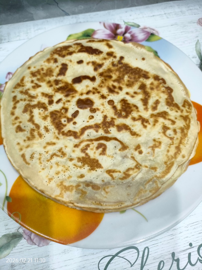 А про дырочки – это знакомая история! 😉 Попробуйте в следующий раз добавить в тесто немного минеральной воды с газом или дать ему постоять минут 20–30 перед жаркой. Тогда пузырьки распределятся лучше, и появится больше тех самых кружевных отверстий. 🫧✨