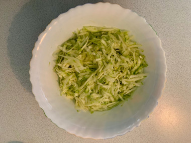 Кабачки натрите на крупной терке, после чего отожмите. Лишняя жидкость сделает тесто слишком жидким. Вбейте в кабачкам яйца, всыпьте муку, посолите и поперчите по вкусу. В зависимости от качества муки её может понадобиться чуть больше или чуть меньше. О муке и её свойствах подробнее можно прочитать в отдельной статье, ссылка в конце рецепта.