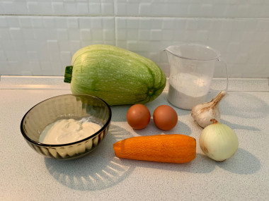 Как сделать кабачковый тортик? Подготовьте все необходимые ингредиенты.