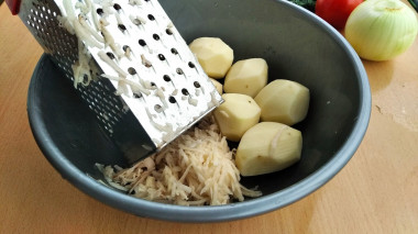 Теперь натрите сырой очищенный картофель на крупной терке.