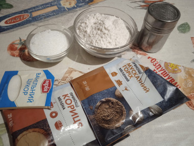 В просторной миске соедините все сыпучие ингредиенты, кроме муки, и тщательно перемешайте. У меня из пряностей только корица и ваниль. Если вы любите ароматные и пряные блюда, можете добавить молотую гвоздику, имбирь, мускатный орех. Чем отличается ваниль от ванилина, и как их правильно добавлять, читайте в статье под шагами.