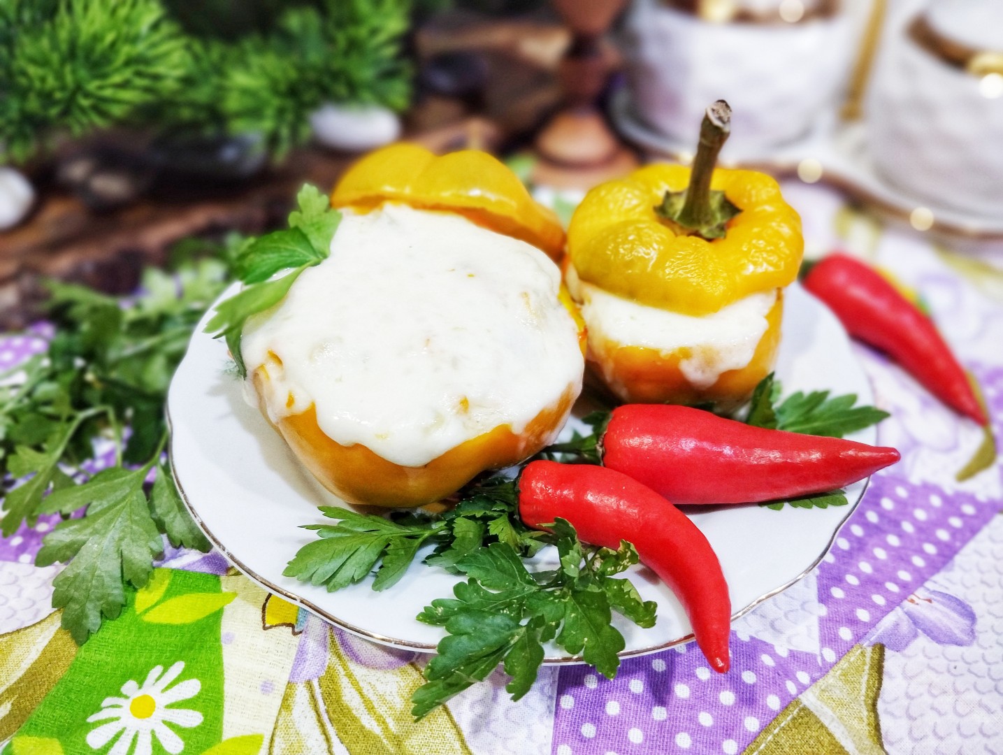 Готовые перцы выньте из духовки, немного остудите и подавайте к столу. Приятного аппетита!