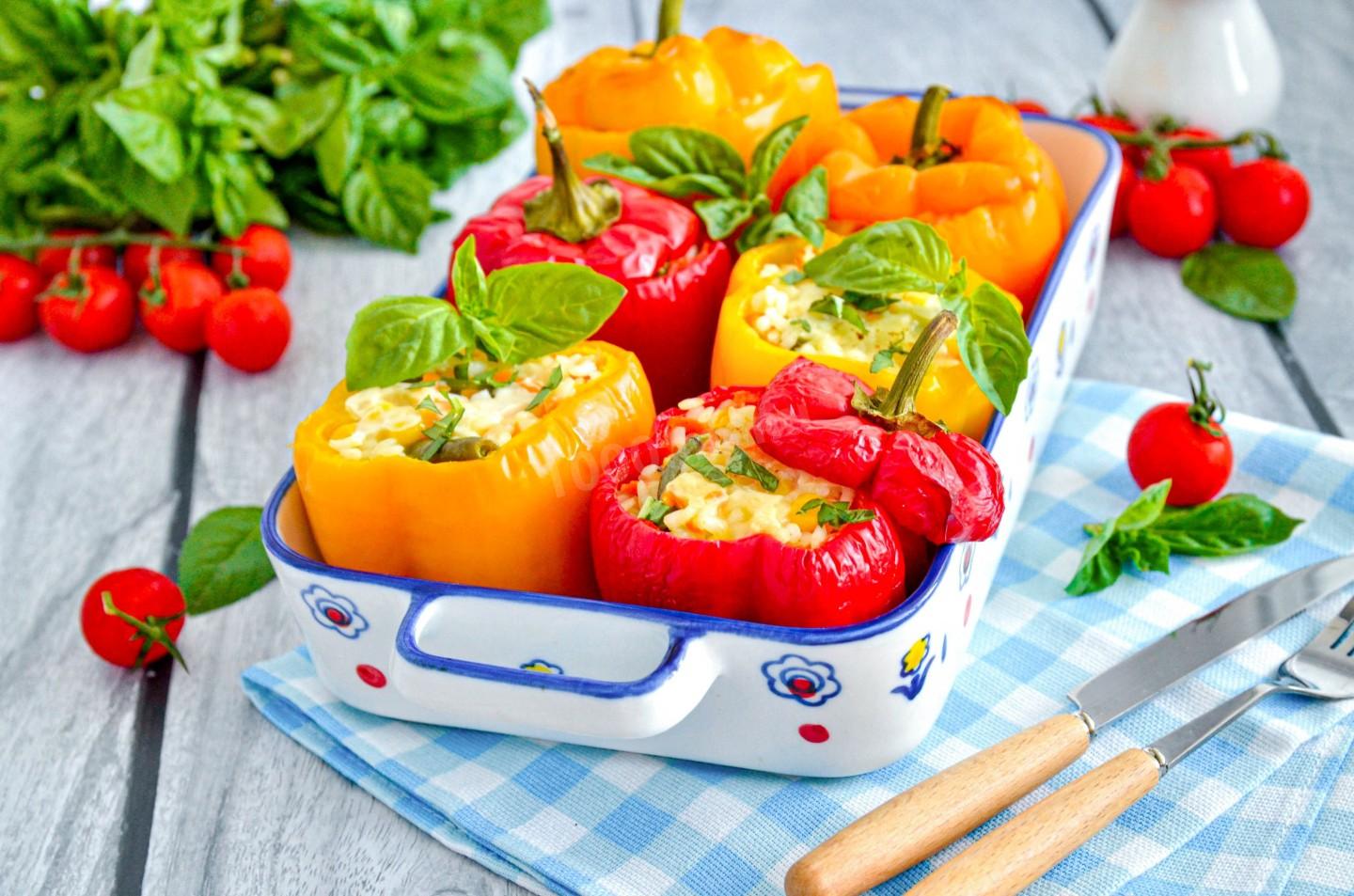 Шаг 1. Как запечь болгарский перец фаршированный овощами и рисом без мяса в духовке?