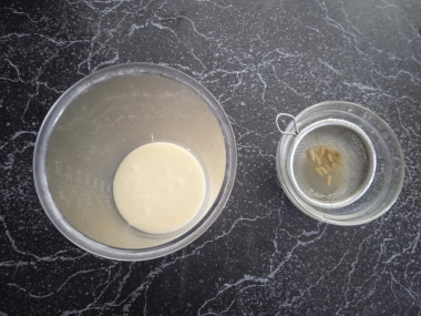 Возьмите миску, в которой вы будете взбивать десерт. Перелейте в нее сгущенное молоко, а затем лимонный сок. Хочу предупредить, что количество лимонного сока вы можете регулировать по своему вкусу. Если вы не любите десерты с насыщенным лимонным ароматом, то уменьшите его.