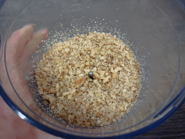 Затем мелко порубите орехи ножом. Можете также измельчить орехи в блендере.