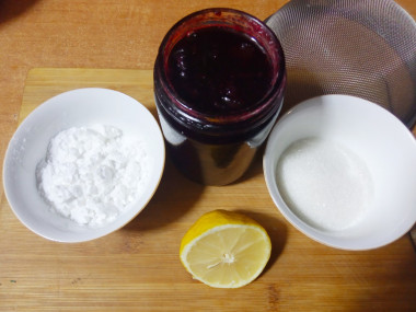 Как сварить кисель из варенья и крахмала? Очень просто! Для начала подготовьте необходимые ингредиенты по списку. Варенье подойдет любое, домашнее или магазинное. У меня домашнее вишневое варенье. Количество сахара можете регулировать по своему вкусу. В зависимости от сладости варенья.
