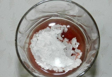Часть смеси перелейте в стакан и разведите в ней картофельный крахмал. В зависимости от желаемой густоты киселя, можете добавить 2 или 3 ст. л. крахмала. Если используете кукурузный крахмал, то его нужно брать примерно в 1,5 раза больше, так как он слабее картофельного.