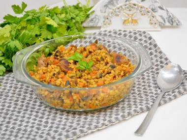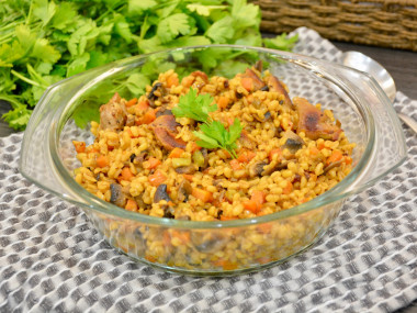 Булгур с индейкой и овощами на сковороде
