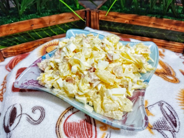 Салат из копченой курицы и ананасов готов. Приятного аппетита!