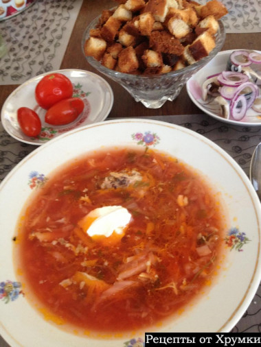 Ну вот - на сегодня борщ приготовила с яблоками, правда вкусно, яблоки взяла кислые, как в рецепте а к нему в придачу сухарики сделала, вместо хлеба, все остались довольны!