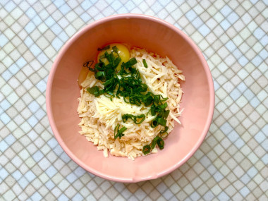 В миске смешайте сыр, желток и зелень. Можете также добавить свои специи по вкусу.