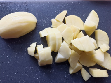 Картофель очистите, помойте. Нарежьте картофель средними кубиками.