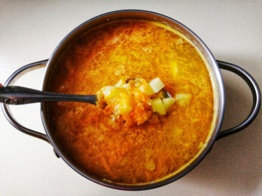 Суп можно сварить на бульоне из копченых или свежих ребрышек. Вкус и аромат блюда будет иным. Свежие ребра предварительно обжарьте до румяности на рафинированном растительном масле. Затем переложите в кастрюлю, залейте водой. Варите до готовности. Дальше действуйте по рецепту.