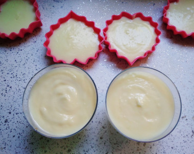 Разлейте молочную смесь по силиконовым формочкам или креманкам и охладите при комнатной температуре. Затем поставьте в холодильник на 6-8 часов для полного охлаждения. Я использовала мини-формы в виде сердечек (их вы можете увидеть на фото к этому шагу) и фигурную форму, готовый десерт из которой представлен на фото в следующем 9 шаге.