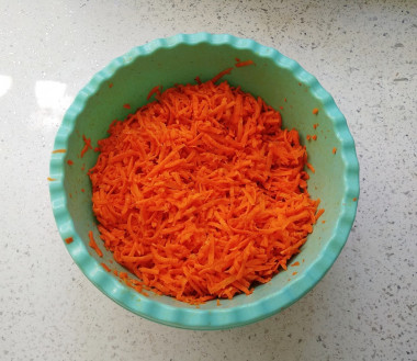 Имейте в виду, что от того, как Вы измельчите морковь, зависит и конечный результат в этом блюде: натертая морковь в процессе термической обработки превратится в кашицу и равномерно смешается с остальными ингредиентами, нарезанная соломкой или брусочками сохранит свою форму.