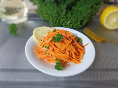 Впервые приготовила салат из моркови как в столовой. На пробу сделала небольшую порцию ( о чем потом и пожалела)))). Процесс приготовления очень простой и быстрый, удобно то, что можно сразу подавать к столу, не дожидаясь, пока салат настоится. Для заправки я использовала подсолнечное масло, домашнюю горчицу ( достаточно острую), мед и лимонный сок. Вкус у салата , благодаря заправке получился просто изумительный. Даже не ожидала, что получится такой результат! Сочетание мёда лимона и горчицы - просто огонь! Больше никаких специй не нужно добавлять, чтобы не перебивать идеальную сбалансированность вкуса! Даже петрушку я добавила в минимальном количестве, скорее для яркости, чем для запаха. С удовольствием беру рецепт в копилочку! Спасибо за рецепт, Вера!