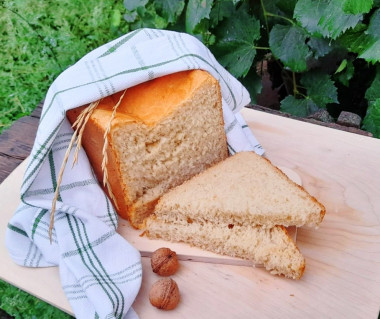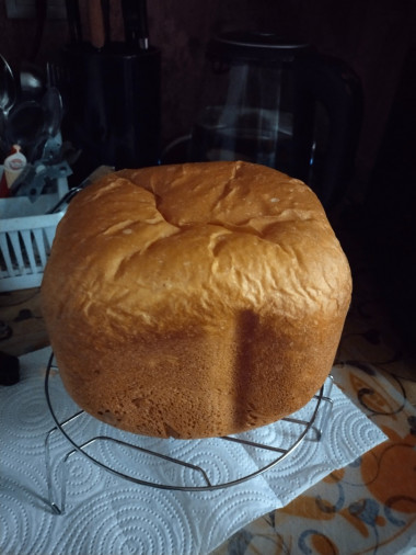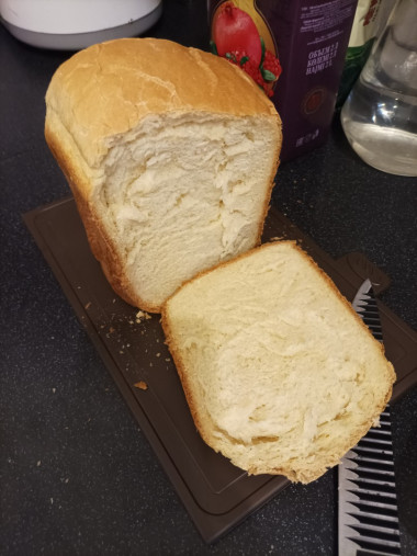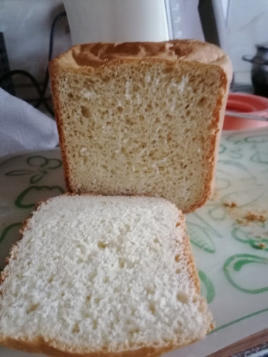 Всей семьей обожаем домашний хлеб. Пеку по разным рецептам. Решила и этот рецептик испробовать) Что мне нравится в хлебопечке, то, что закинул все продукты, кнопку нажал, а она трудится) Состав мне очень понравился, особенно нравится добавлять сухое молоко. Первое, что меня удивило, когда я достала хлебушек - он был просто очень высоким. Граммовка в рецепте как на маленькую буханку (в моей инструкции к хлебопечке). По моему рецепту из инструкции буханка получалась в два! раза ниже. Ну очень пышный хлебушек вышел! А еще меня удивил вкус. Он похож на сдобную булочку, вот правда, хоть джем намазывай и ешь вместо булки на завтрак. Нежнейший и вкуснейший) Мякиш воздушный как облако, пышный, красивый! Корочка тоненькая и хрустящая. Аромат свежевыпеченного хлеба просто волшебный. Всем рекомендую опробовать этот рецепт, он обязательно получится! Автору огромное спасибо!