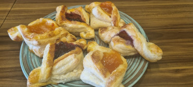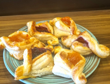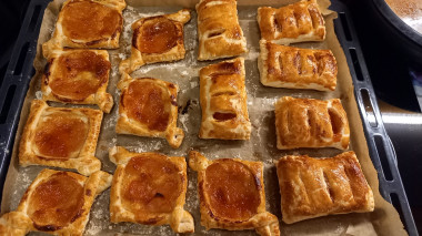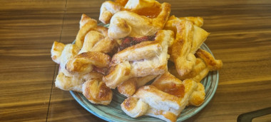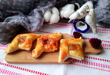 Помимо покупного, вы можете использовать и тесто собственного приготовления. Рецепт домашнего слоеного теста для этой выпечки вы можете выбрать в этом каталоге.