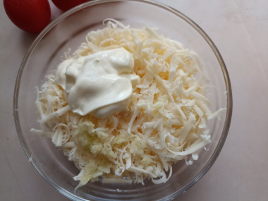 Мой любимы рецепт. Постоянно так готовлю. Использую багет - он более хрустящий. Иногда смешиваю майонез и сметану в равных пропорциях - получается нежнее. И помидор чуть-чуть присаливаю, просто крохотульку, но вкус ярче