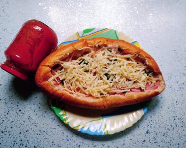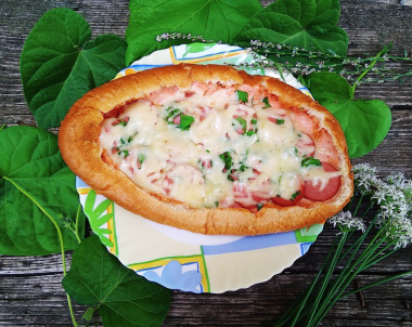 Дочка пришла после кормления птичек вот с таким батоном))) И что с ним делать? А в ленте как раз был рецепт пиццы из хлеба, вот и применение нашлось. Приготовилось все в считанные минуты, а съели еще быстрее) "Основа" уже была готова, поэтому осталось только выложить соус и начинку. В качестве соуса у меня домашний кетчуп и сметана. А для начинки взяла сардельку, нарезанную кружками, помидоры, рубленную петрушку и сыр, конечно. Готовилась пицца три минуты при мощности 750. Получилась сочной-сочной! Очень вкусной! Как хорошо, что авторы придумывают такие быстрые и сытные блюда, спасибо!