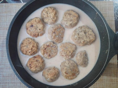 Получившимся соусом залейте тефтели и потушите их под крышкой минут 15.
