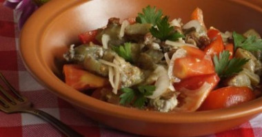 Помидоры выбирайте сочные, но плотные. Мягкие плоды плохо держат форму, в процессе нарезки и приготовления они расползутся в бесформенную массу и испортят внешний вид блюда.