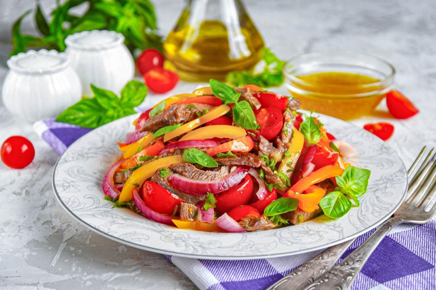 Шаг 1. Как сделать теплый грузинский салат с говядиной, болгарским перцем и помидором?