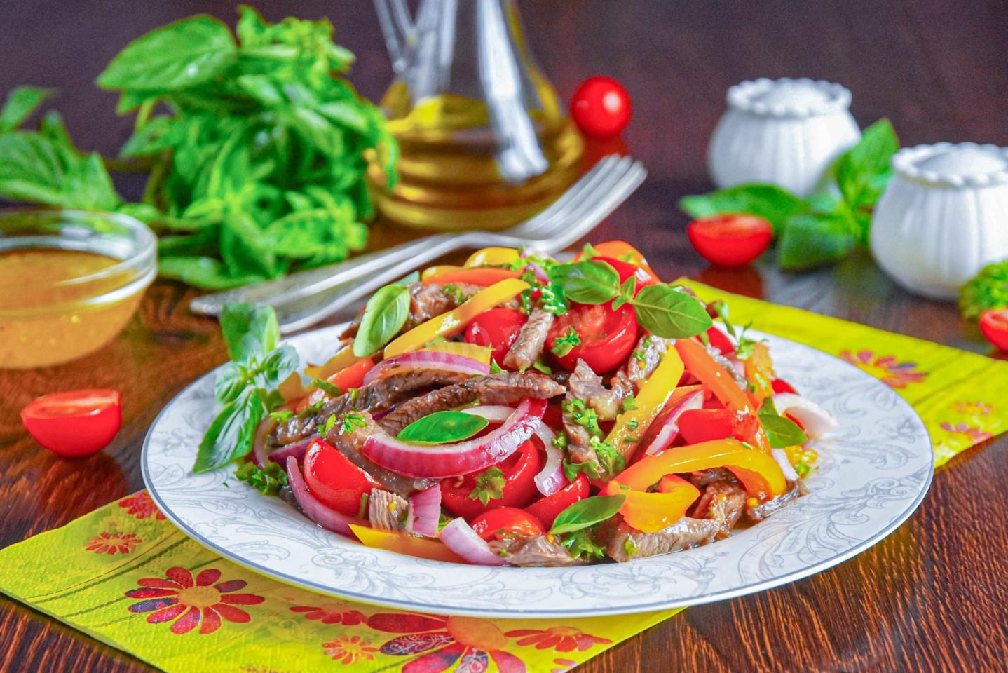 Теплый салат с говядиной болгарским перцем и овощами простой и вкусный, но создает впечатление кулинарного шедевра! Понравился всей семье, а главное, свекрови. Это наивысшая награда