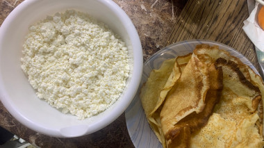 Сегодня мне понадобится творожная начинка для блинов. Блины у меня остались с вечера, а на завтрак решила их нафаршировать.