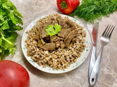 Увидела рецепт тушеной говядины в казане на плите и захотелось приготовить так же. Говядину разморозила, но не до конца, нарезала на слайсы. Удобно нарезать, когда мясо еще не полностью разморозилось. Лук очистила, нарезала кубиком. Сначала обжарила говядину, затем добавила лук, обжарила еще пару минут и всыпала специи. Влила воды, добавила лавровый лист и готовые специи. Тушила все около 2-ух часов, так как говядина была жесткой. Получился отличный на обед или ужин. Подавала вместе с гречкой.
