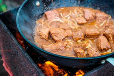 Тушеную говядину в казане на плите приготовить просто, блюдо всегда получается вкусным и сытным, но я всё-таки решила приготовить говядину в казане на костре. Для приготовления выбрала кусок мяса без кости. Нам было очень вкусно, спасибо за рецепт!